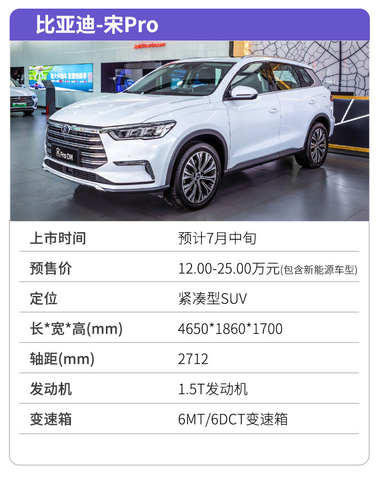 根据最新的消息,比亚迪宋Pro或将在7月中旬上市,毫无疑问,作为Pro车型,宋Pro的整体素质将会在宋之上,素质的提高自然而然带来的将会是售价的上探。