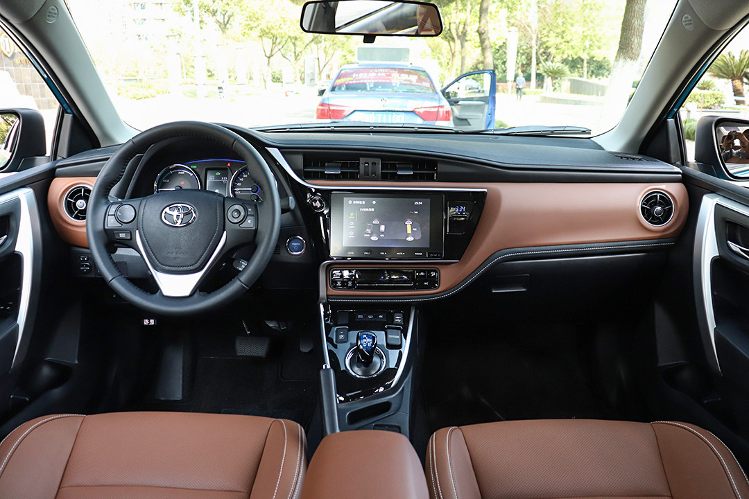 内饰方面与燃油版的雷凌也是极为地相似,错落有致的线条勾勒出层次分明的布局,良好阅读与视觉收效甚好。只不过,车内的用料、做工、质感与混动版的雷凌双擎也是别无二致,质感这点有些令人难掩失落。