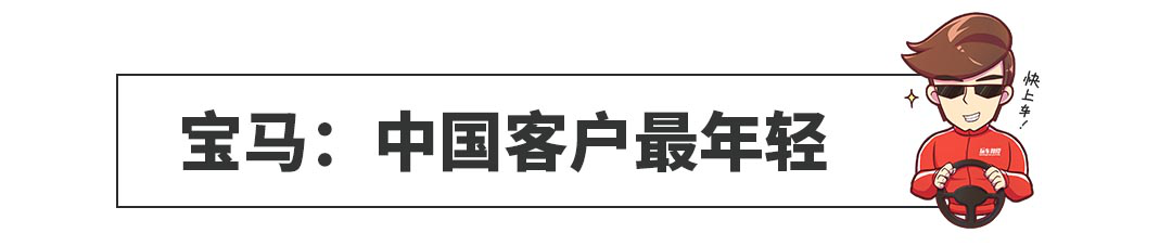 宝马中国车主的平均年龄只有35岁,这是什么水平呢?德国宝马平均客户年龄是53岁(倒过来的),中国客户是世界上最年轻的(也是最有钱的),所以再过几年宝马国内主要用户就是90后和00后(没错你就是未来的宝马目标客户)。
