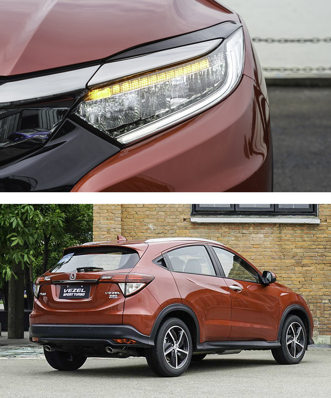除了采用1.5T代替1.8L发动机外,缤智也做出了一些外观细节上的调整,前脸进气格栅位置的镀铬装饰条更大了,且大灯造型也参考了雅阁的设计,而尾部的双出排气管也向我们展示了改款后的缤智动力更强了。