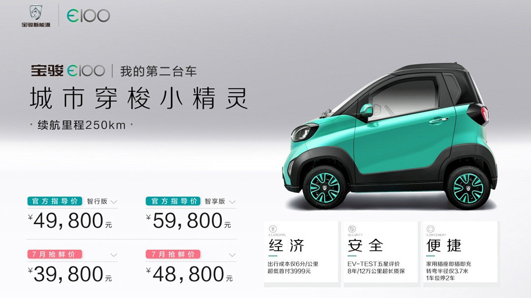 今天一则不算那么新的上市新闻引起了教授的注意, 毕竟最近被太多新车轰炸所麻木了,但它却是让人有一种眼前一亮感觉——宝骏E100全国上市,官方指导价4.98-5.98万,7月份购买还能享受惊喜抢鲜价3.98-4.88万。之所以说它不是新车,是因为它早早就在广西、山东等省份进行销售,属于区域销售车型,如今终于变成了一款全国性纯电动车。