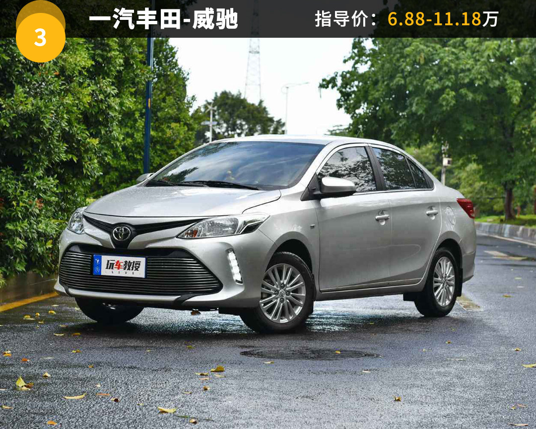 威驰同样是一款以低廉养护为卖点的小型轿车,6.87L的百公里油耗水平和飞度相差无几。该车延续了丰田一贯的造车理念,同样有着省心省油的亮点,实力平均且无明显短板,因此深受消费者喜爱。