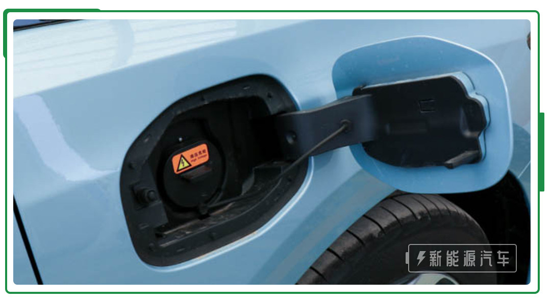 在前右翼子板处有个慢充的充电口,快充充电口位于车头别克标后面,按压开启。