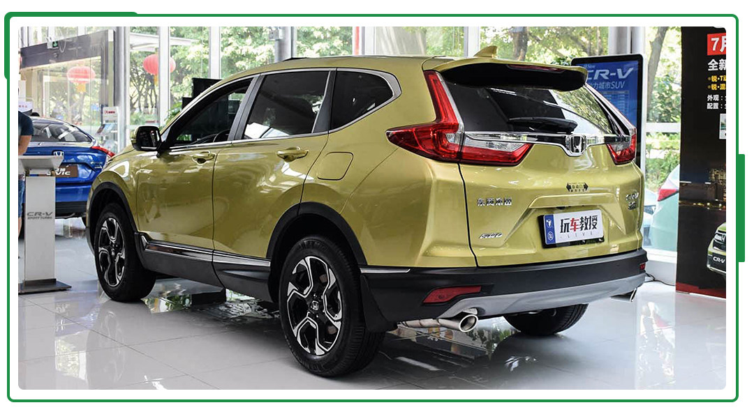 CR-V长宽高为4585x1855x1679mm,轴距为2660mm。高窗线的设计多了一点运动的气息,不过平滑的车侧虽然有腰线进行勾勒,但走的是大气路线,想表达更加沉稳的风格。双五辐17寸(高配18寸)轮毂显运动。