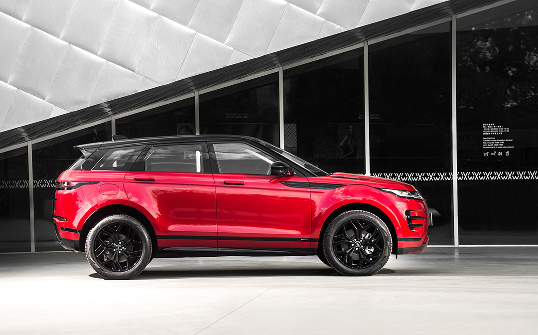 车身侧面来看,溜背造型、双色车身等经典的元素都得以保留。取消黑色轮眉后,整体更偏向于城市风格。标志性逐渐上扬的腰线贯穿车身与尾灯连接,强化了车身的整体感,车门把手和揽胜星脉一样采用了隐藏式设计,降低风阻的同时也带来更强的科技感,20英寸的熏黑轮圈也非常有气势。