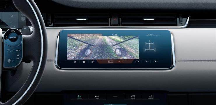 相比设计,个人其实更喜欢全新一代揽胜极光的智能科技,这也是全新一代揽胜极光着重升级的内容,除了上文提到的各种大屏科技,要重点介绍的就是业界首创的“透视引擎盖”技术(地物视图技术ClearSight Grand View)。