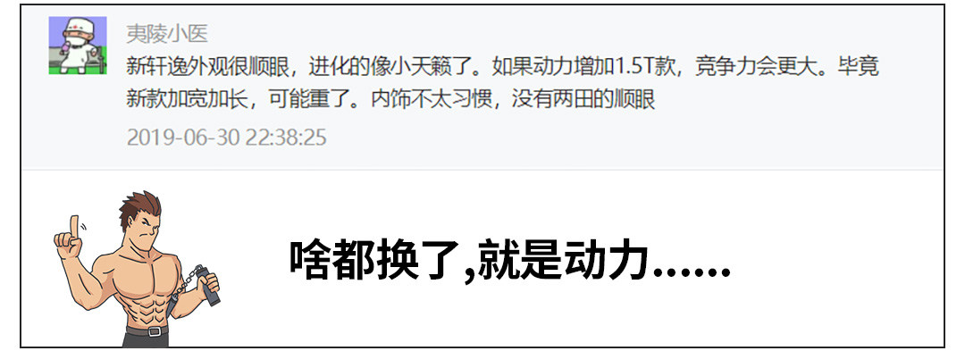 新一代轩逸上市后,现款轩逸将以“经典款”车型同堂销售。很容易看出,新一代轩逸的产品力提升,价格肯定也是要有一定涨幅的,以保证两款车型市场的差异化。但1.6L动力却没有太大的升级,但强调了新一代CVT变速箱带来了更低油耗。这时候事情就很简单了:经济适用/时代潮流。