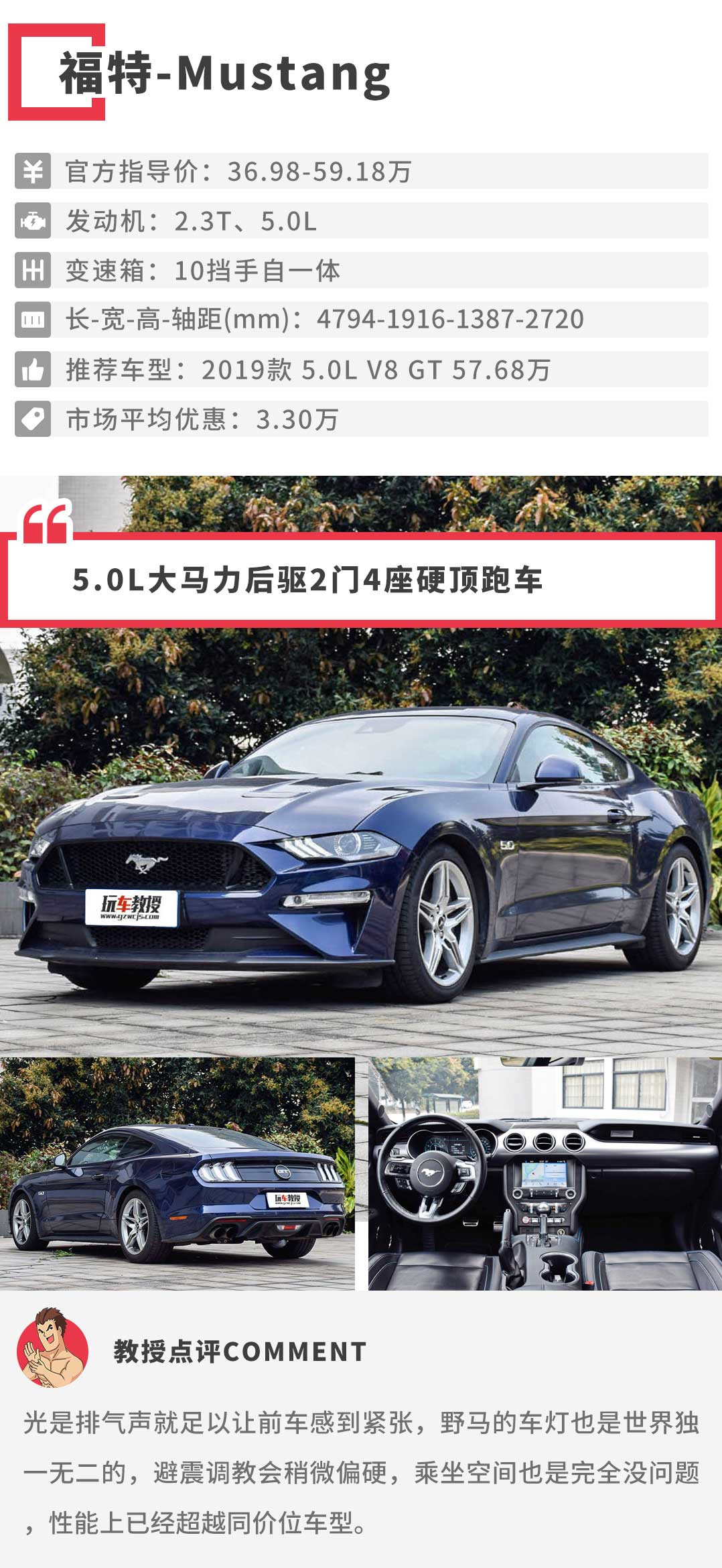 5.0L的福特-Mustang相信是能买到最便宜搭载V8发动机的车型,同级车型中的性能可以说是赢遍所有无敌手了,如此大马力的后驱超跑用作玩漂移的首选车型相信会找到不少乐趣。