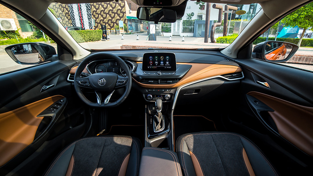 进入车厢,家族环抱式中控是悬浮式中控屏幕,这是昂科拉再一次“讨好”年轻消费者的证明,并且可以看到撞色配色风格、棱状网格座椅纹理等等,它还有超大尺寸全景天窗,要想追求“诗与远方”?昂科拉还是能打得一手好辅助的。