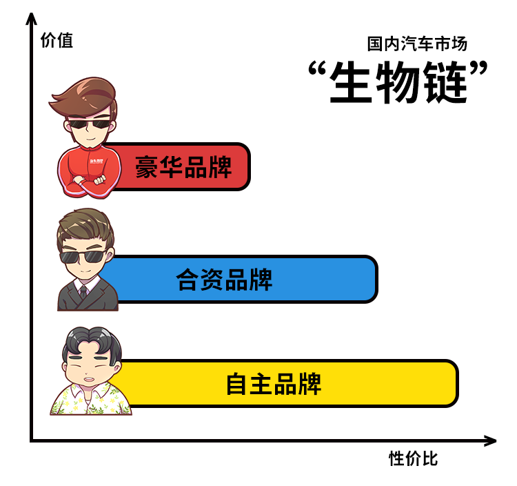 在汽车圈上,目前的国内汽车市场,大致可以粗略的分为自主品牌、合资品牌、豪华品牌三大阵营。虽然它们处于不同的“生物链”,表面事不关己,高高挂起,但私底下,按照商业吹捧原则,也许它们心里是这样想的。