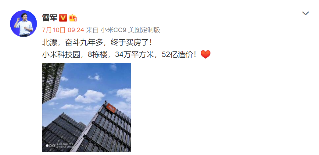 雷军不是晒了造价52亿的小米科技园吗?有8栋楼,总计34万平方米。再想想自己,人家说一句北漂9年多,喜提房子8栋,而自己还在期待雷军推出“年轻人的第一套房”。