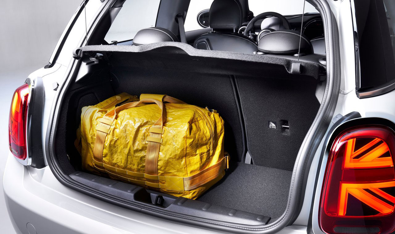 由于电池位于前排座椅和后排座椅下方的车辆地板深处,区别于传统动力模块布置形式,新车对于行李箱空间没有过多的侵占,其空间装载能力与燃油版MINI Cooper S基本持平。常规下后备箱的容积为211L,而当后排座椅放倒的时候,可以扩展到731L。为了保证电池与地面之间合适的离地高度,纯电车型将车型高度提升了18mm。