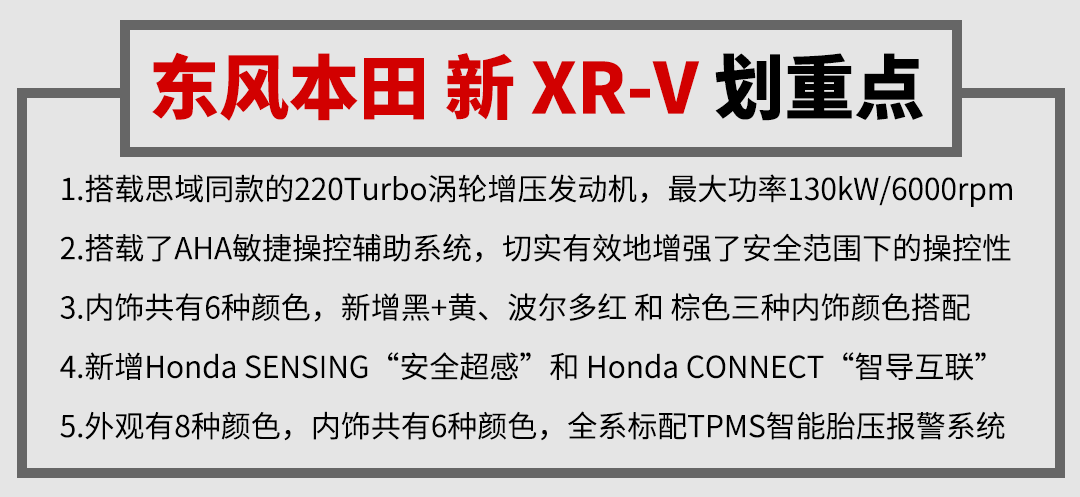 教授在文章一开始提到的那六点,基本可以囊括这次全新XR-V所有的改动了。为了防止有人说教授一笔带过说的不细,用这段来强化下:
