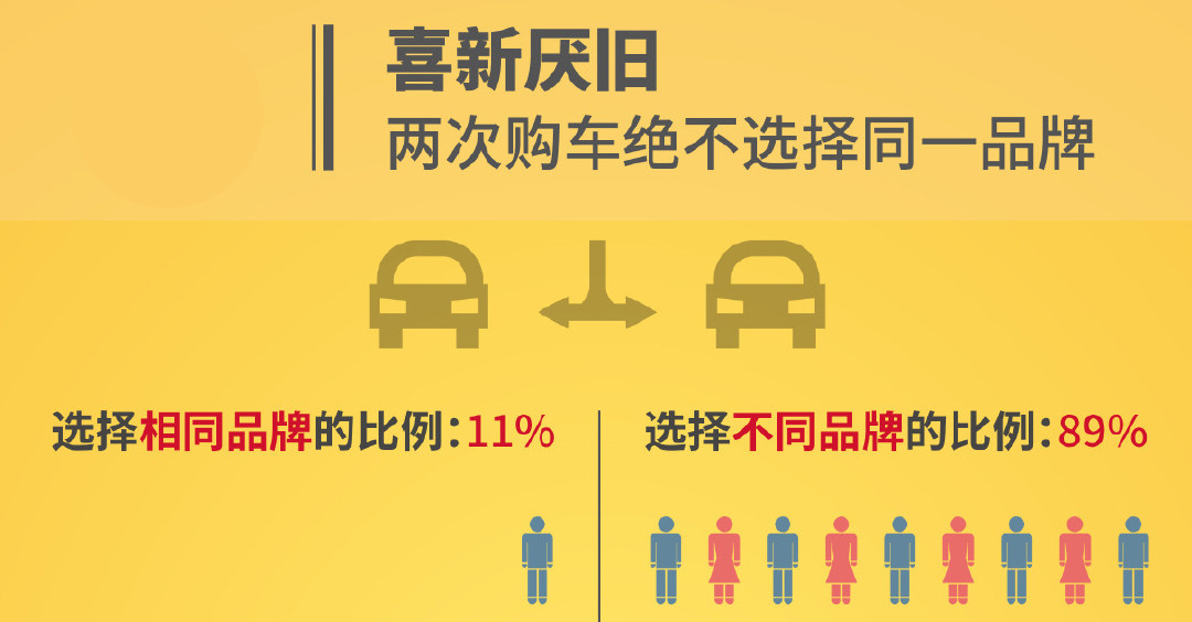 大多数人在第二次购车时,往往都选择不同品牌的车型,而且是压倒性的比例。这是因为,不少家庭都是已经有一辆车的情况下,再买第二辆车。