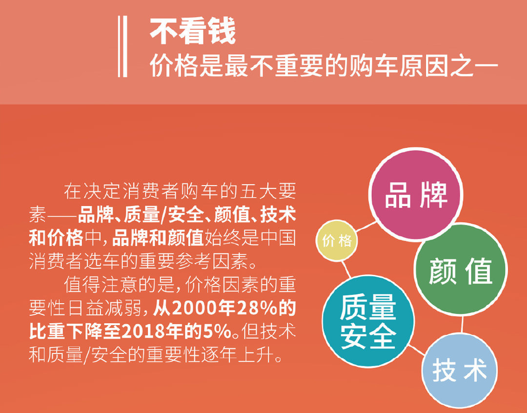 从购车五要素看,价格居然排在了品牌、颜值、质量安全、技术之后。中国人有钱已经众人皆知了,如今生活水平的提高,让中国成为众多豪车的第一大市场。