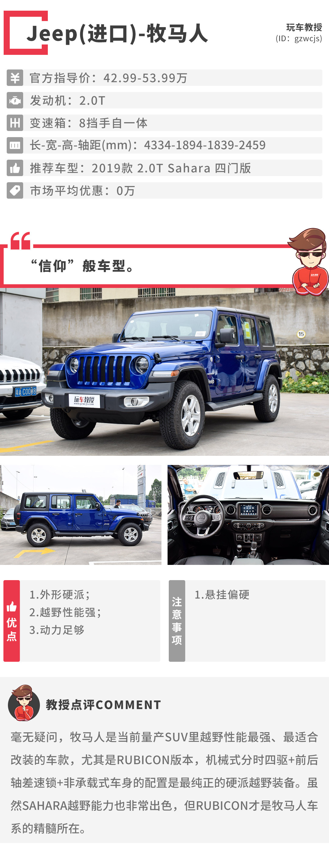 教授经常为大家推荐各种实用的城市SUV,但部分依旧网友对此不满,吐槽说这些SUV不够劲,想要一些能他们去诗和远方的车型。教授想想也是,随着生活水平的提升,大家对车的追求已经不再是“能动”就能满足大家。尤其男性,蕴藏在体内的“野性”经常想着有地方能爆发。那好,教授这次就推荐5款硬派SUV车型,它们别说诗和远方了,跨过山和大海也没问题。