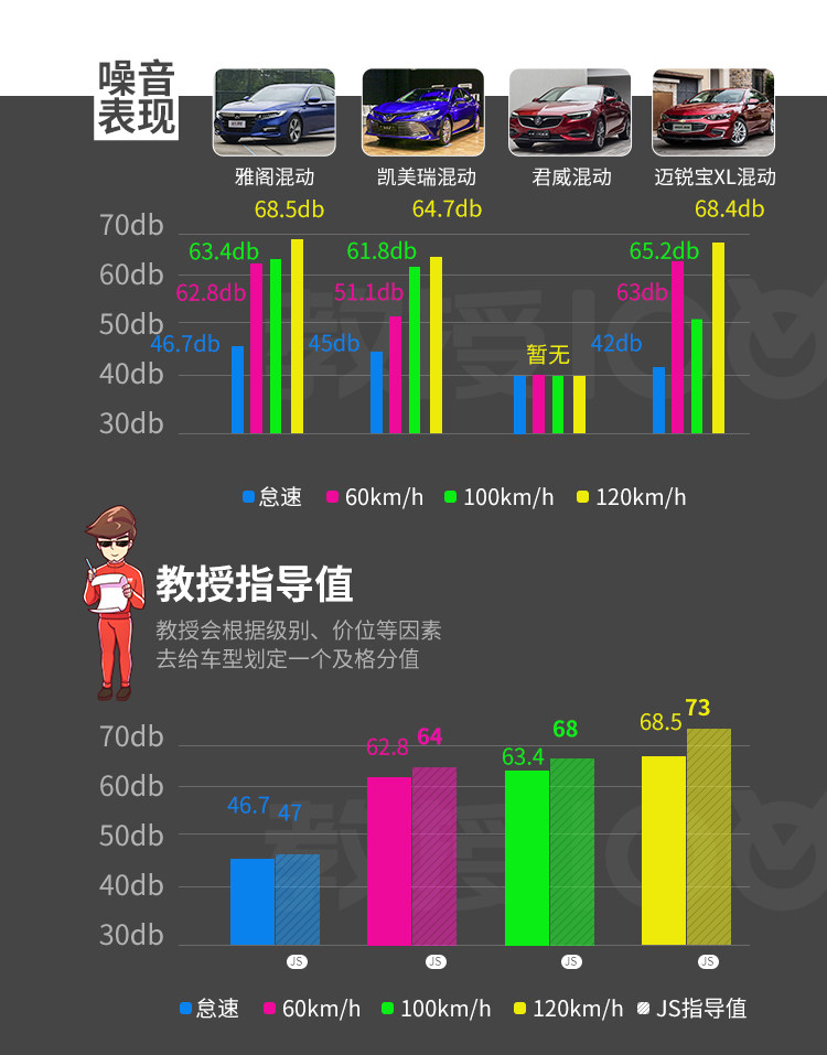 可见装载了主动降噪的两款车在静谧性上也并没有对凯美瑞混动形成碾压,基本处于相同的水准。