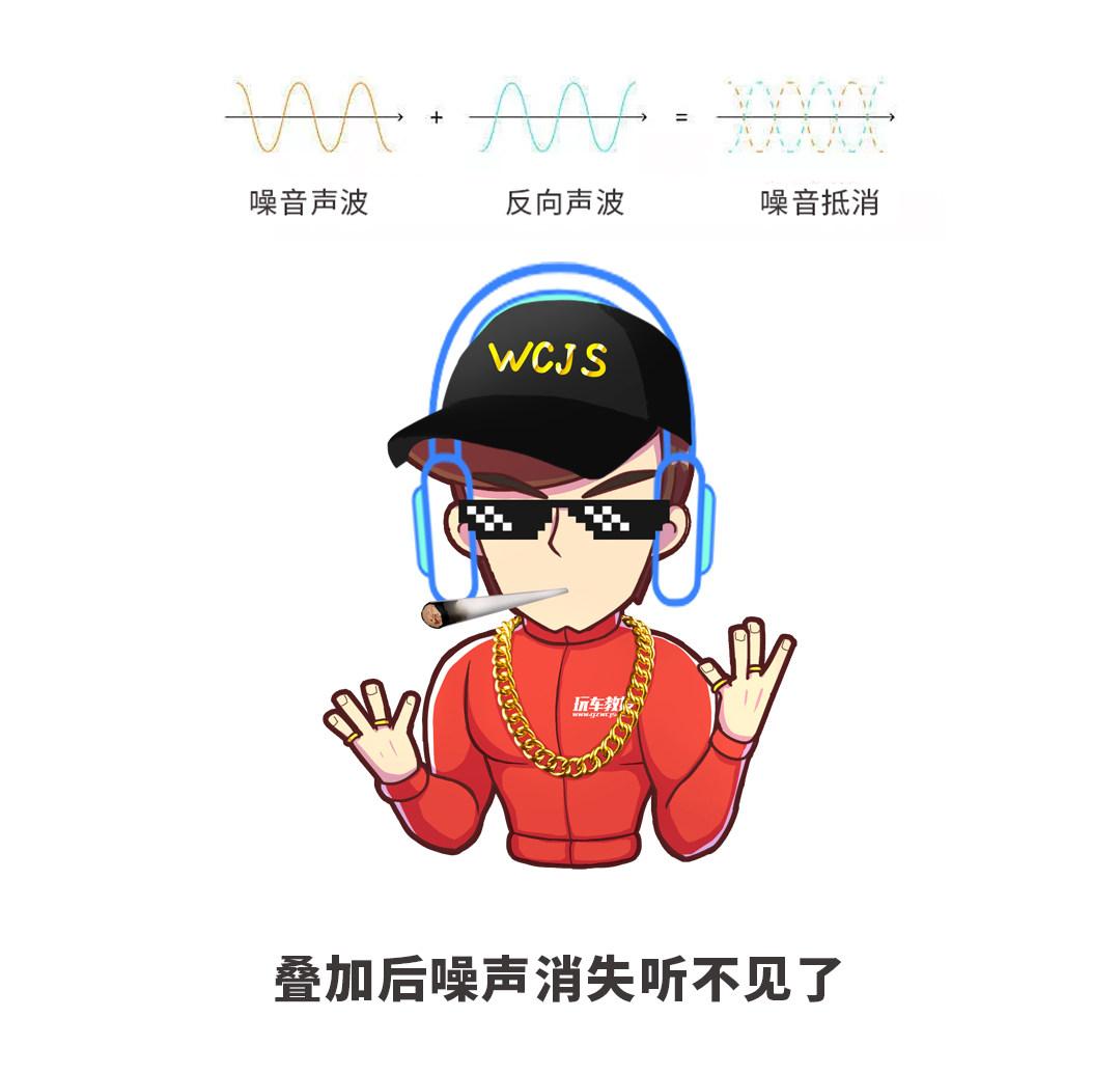 3. 通过车内扬声器发射与噪音相位相反、振幅相同的声波来抵消噪声。