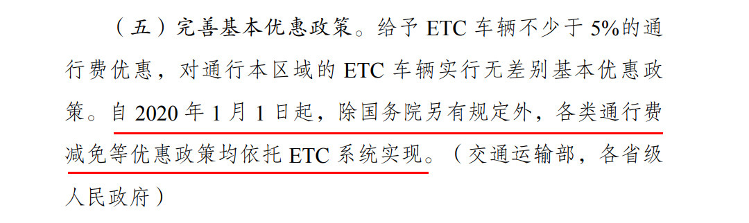 《方案》还要求给予ETC车辆