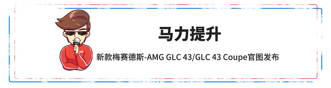 日前,梅赛德斯-AMG正式发布了新款GLC 43以及GLC 43 Coupe官图。两款新车分别基于新款GLC/GLC Coupe而来,外观换上了更加运动的包围套件,同时,如其他AMG车型一样,GLC 43以及GLC 43 Coupe均采用了AMG直瀑式前格栅。内饰布局依旧与GLC/GLC Coupe保持一致,不同的是换装了AMG运动方向盘以及碳纤维饰板以提高车内的战斗气息。动力层面,两车均搭载3.0T V6双涡轮增压发动机,最大功率提升至390马力,匹配 AMG SPEEDSHIFT TCT 9G 变速箱,并搭载4MATIC四驱系统,百公里加速4.9秒。