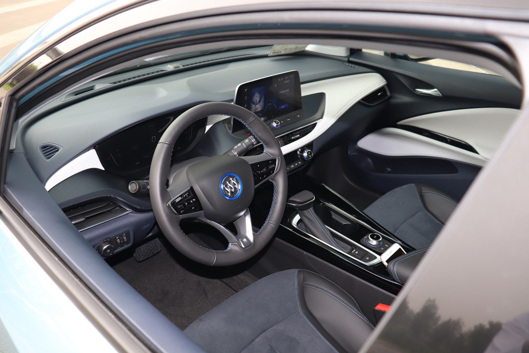 内饰方面除了一些带蓝色的装饰以外,没有什么特别亮点的地方,翼展式的中控设计是别克家族固有的元素之一,在VELITE 6上进步得用料更足,储物空间以及乘坐空间都比较出色。