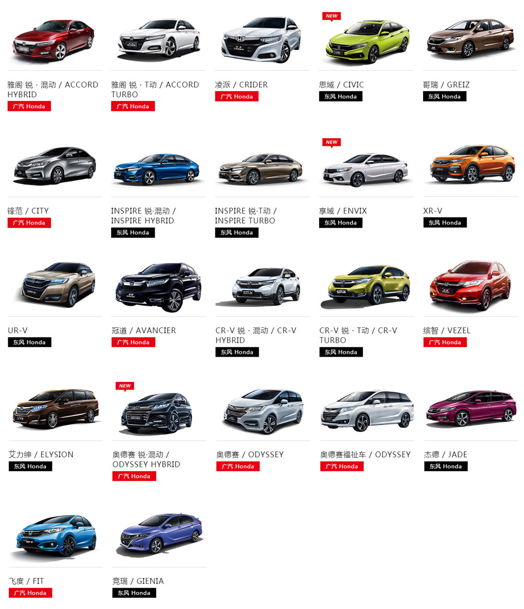 本田的产品阵营,除了中大型的轿车/SUV,以下的车型基本齐全,而尤其是横向产品布局的选择非常多,就像紧凑级轿车,哥瑞竞瑞享域凌派思域等,而且大多采用双车战略,风格化差异明显,虽说产品阵容没有大众那么华丽,但是消费者最刚需的车型,本田一样不缺。