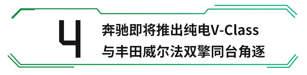 早在今年日内瓦车展上,奔驰便发布了奔驰EQV概念车,新车定位纯电动MPV,可视为奔驰V级纯电动版的蓝本。据悉,奔驰会在今年9月的法兰克福国际车展上发布纯电动V级的量产版车型,有望采用7座/8座布局,未来量产后将与丰田埃尔法、威尔法等混动商务MPV分庭抗礼。