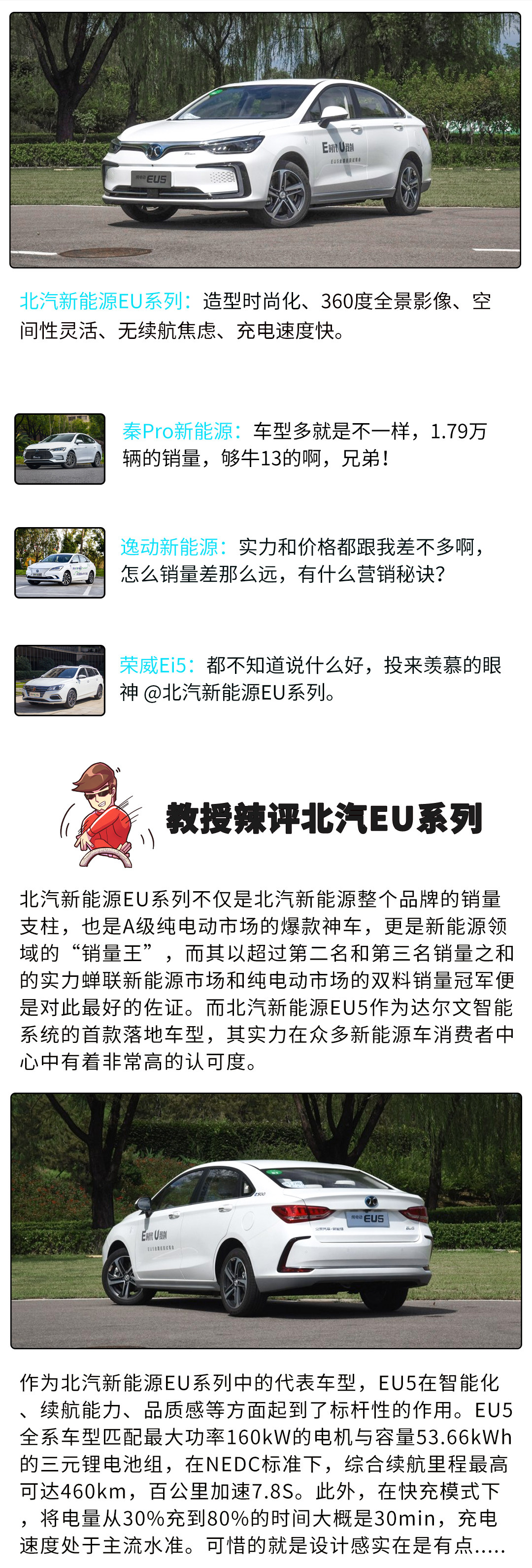 而随着销量成绩单的出炉,这些上榜的车型也是遭到了它们竞争对手的吐槽或者是相互间的恭维。那么这些能排在销量榜前几位的新能源车都有什么独到之处?它与它的竞争对手间到底都在说些什么?别着急,且听教授往下说。