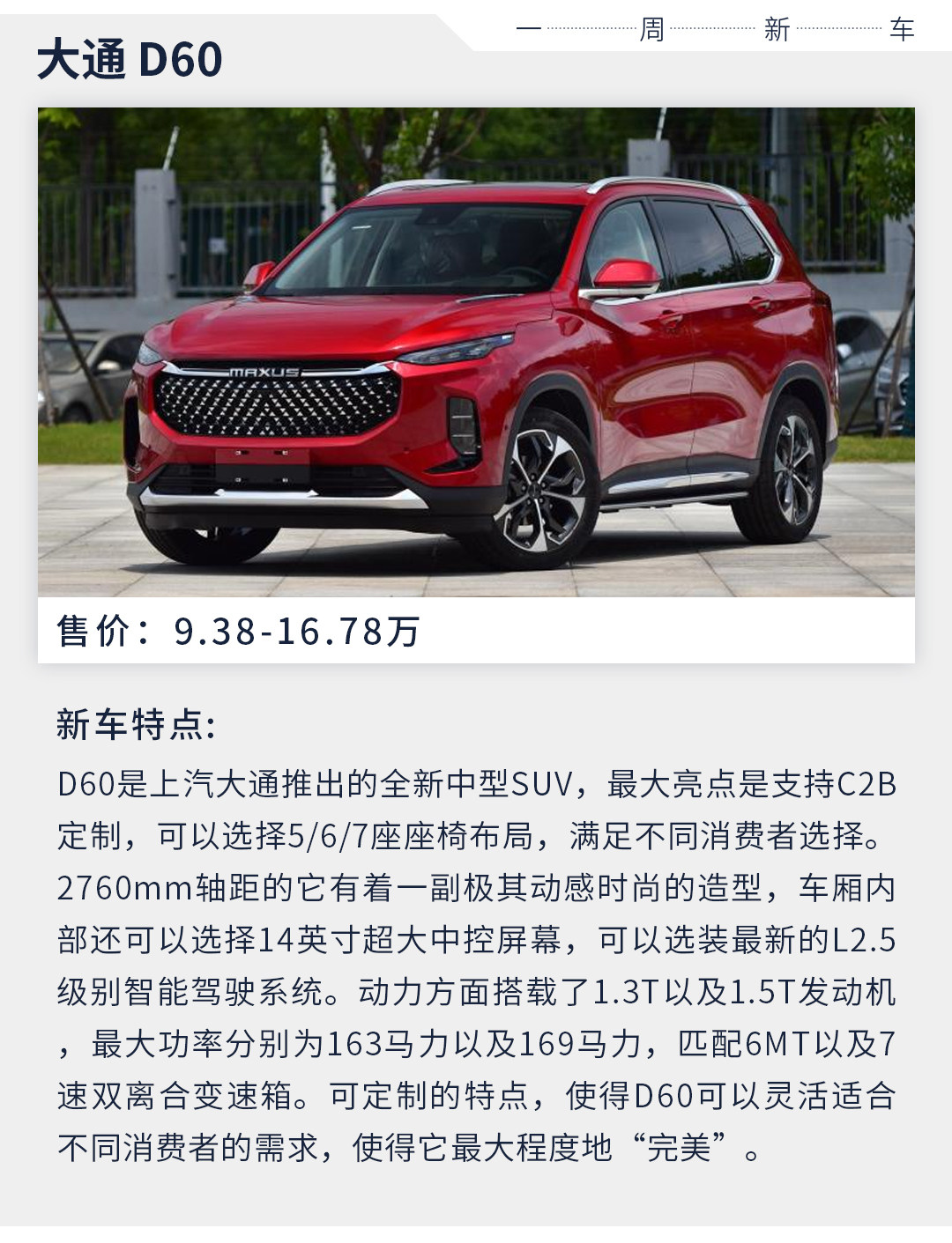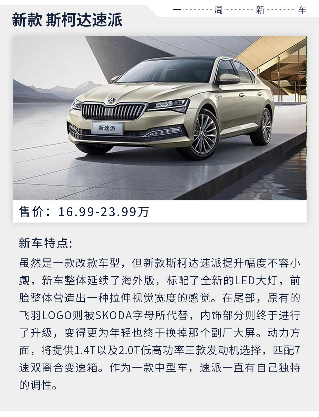 话不多说,马上开始我们这周的《一周新车》,无论是“大车”还是”小车”,在这周都能提供不错的选择。