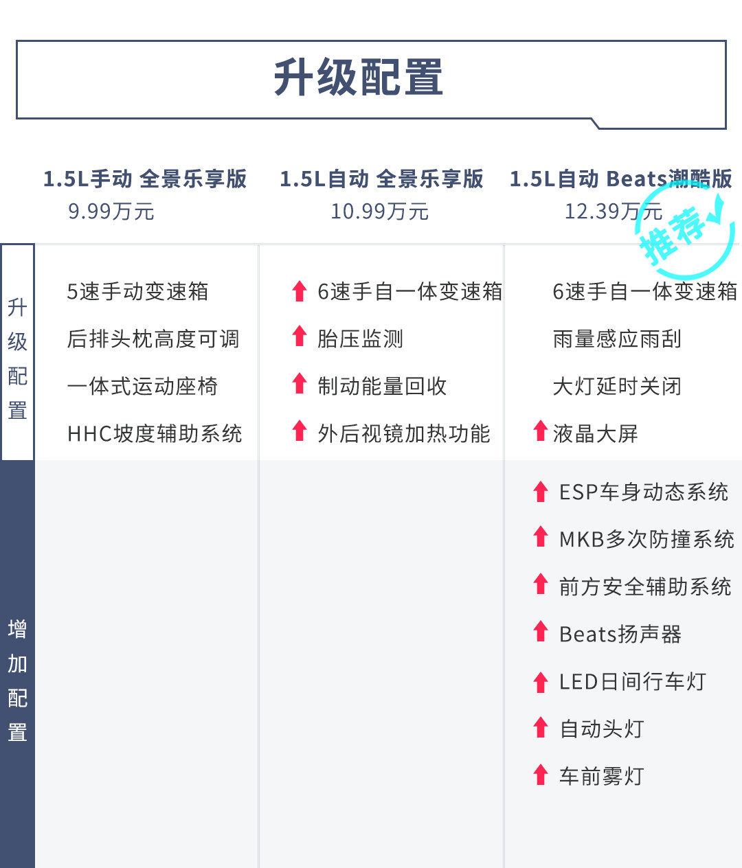 近期车市进入了一个小高峰,更新换代的车型并不少,而车型更新换代后,配置往往比之前有所提升,那么近期上市的新车中,哪个配置比较划算呢?教授就挑选了10-15万之间6款大热的车型给大家参考。