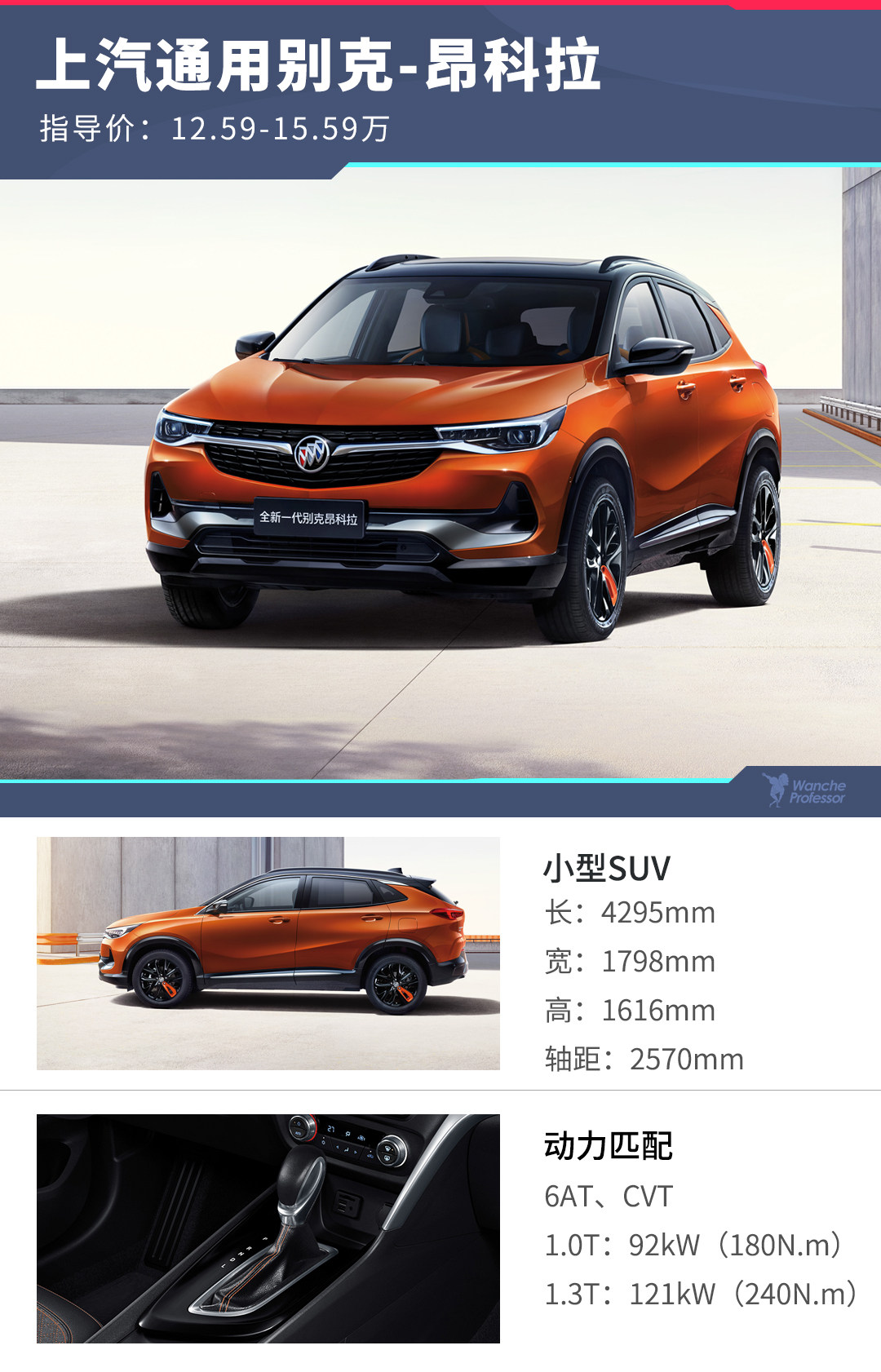 新上市的昂科拉有四个版本,1.0T和1.3T各有高低两种配置,全为自动挡。在所有版本中,教授最推荐的是15T自动舒适型,也就是1.0T的高配版本。