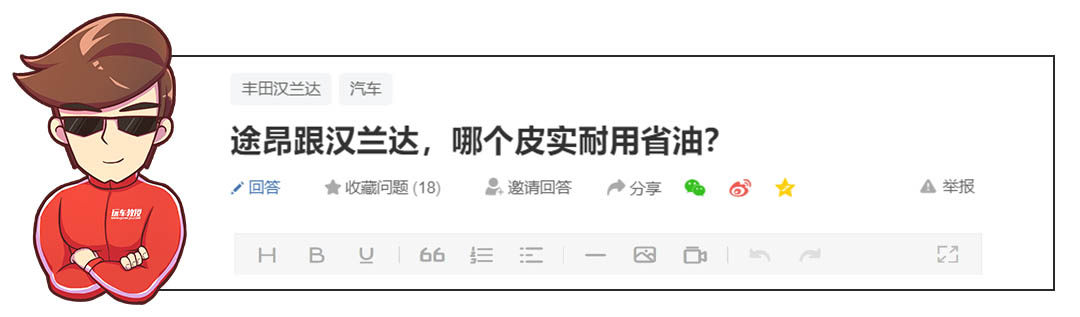 总之,汉兰达比途昂耐用省心很多,而途昂维修、保养费用会高出一些。