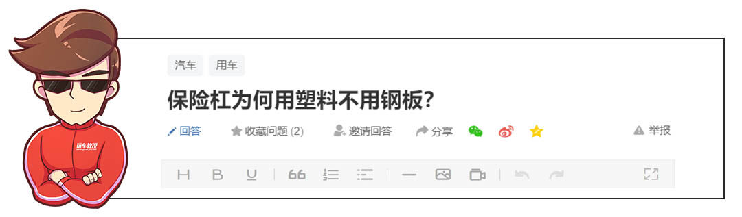 首先要说明一点,保险杠不是拿来给车辆“保险”的,也就是说保险杠不是为了加强车辆的碰撞强度而装上去的。打个比方,支撑一栋房子最重要的是什么?是承重墙的柱体,而不是承重墙表面要用钢板还是塑料,所以,保险杠就好比承重墙的表面,车身的钢架则是承重墙柱体,车辆的强度在于车身的材料和钢架结构,而不在于车辆前脸的那一块保险杠。