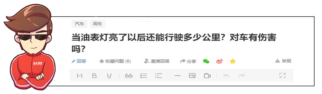 至于油表灯亮继续行驶是否伤车?教授觉得一般都不会出现这种状况,因为油表灯只是提示作用,并不意味着就不能继续行驶了。而且,一般来讲,车辆在出厂之前都做过很多测试和实验,来避免油箱缺油对汽车的某个零部件造成伤害。但是,教授不建议经常等到油表灯亮了才去加油,因为一方面自己估算里程也比较麻烦,另外一方面就是附近没有加油站的话就只能…….等着拖车吧!!!