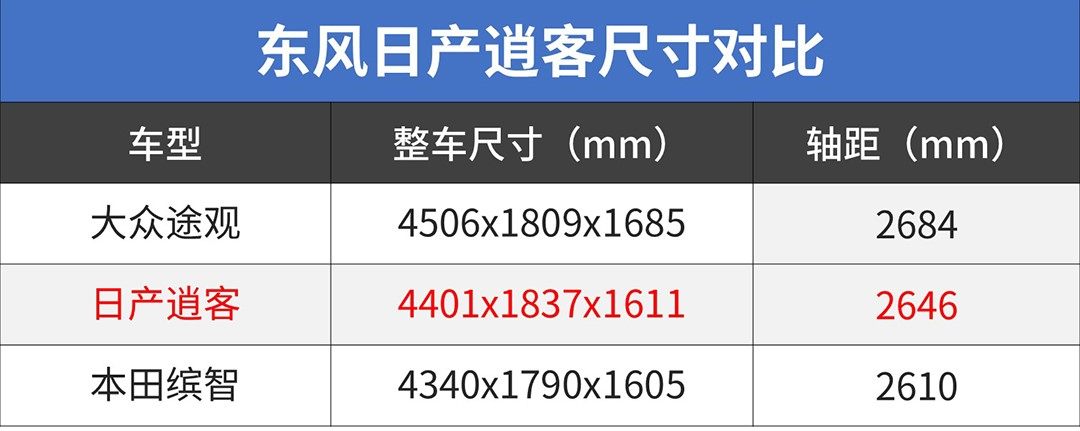 首先是尺寸,要比上途观/CR-V这些标准紧凑型,逍客略小半级,但要对上的是缤智/探歌这类以A0级平台开发的小型SUV,逍客又会大半级。但逍客又拥有着2646mm的轴距,这又是看齐“紧凑型”的标准。在中国消费者最看重的空间上,逍客早已实现了“错位竞争”。