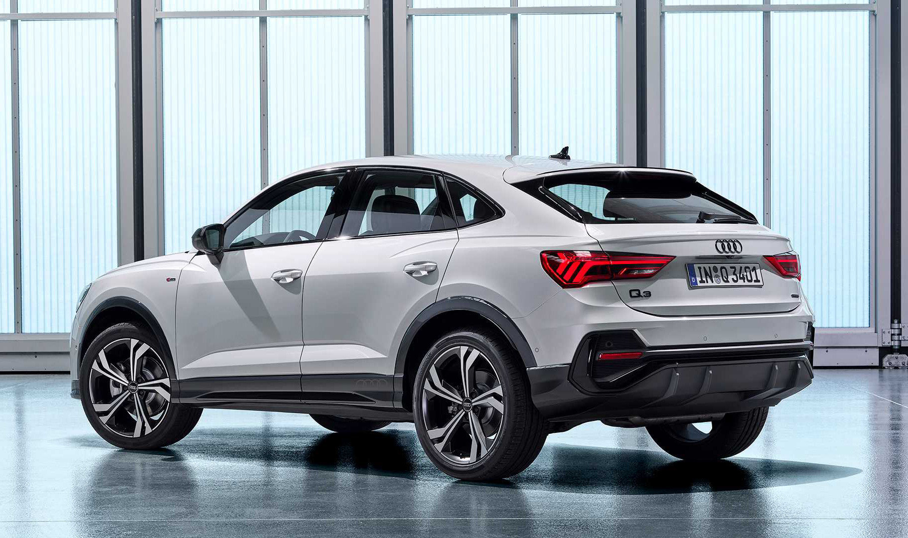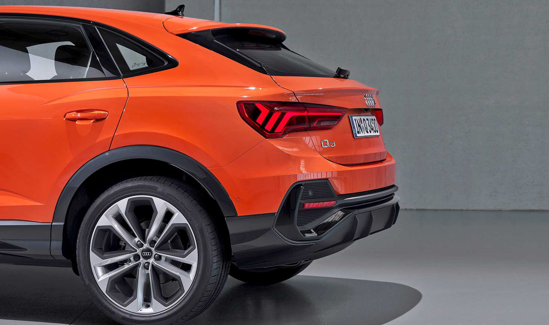 侧面才是Q3 Sportback的与众不同之处,从B柱开始,车型曲线缓缓下降,而不是那种飞流直下。姿态足够妩媚、线条足够流畅、气息足够运动,整体有了几分奥迪Q8的成熟味道,后45°往往是欣赏该车型的最佳角度。