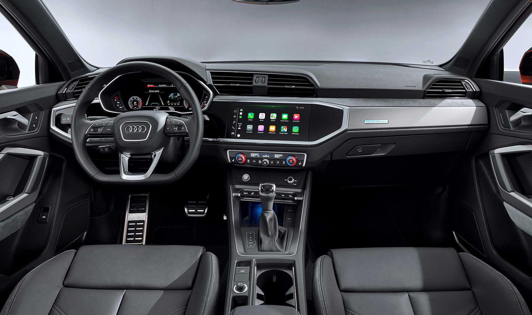 内饰方面,延续现款Q3版本风格,依然是奥迪新的内饰布局和相应的功能。虚拟座舱很有科技气息,并且层次感明显。