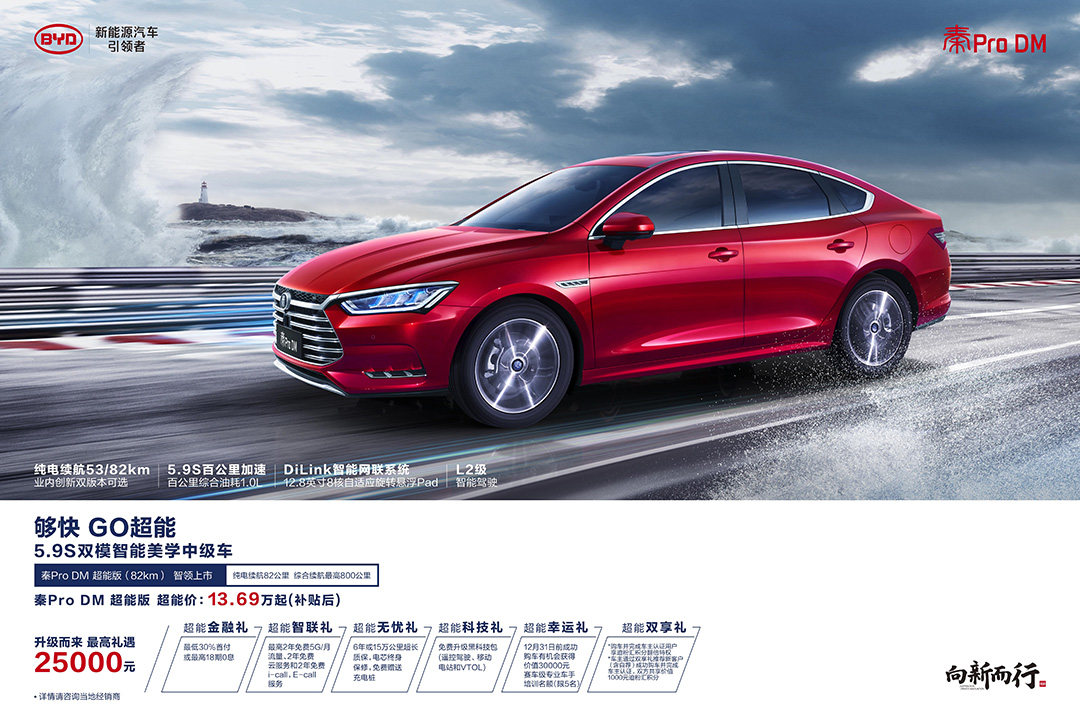 日前,比亚迪秦Pro DM超能版正式上市。新车推出53km以及82km两种纯电续航共5款车型,补贴后售价为13.69-17.99万元。新车外观以及内饰的变化并不大,主要针对相关配置进行升级,新车新增BSD盲点监测、LCA并线辅助系统、RCTA倒车侧碰预警系统、RCW后向碰撞预警系统、LKS主动式车道保持系统5项智能辅助驾驶功能,并使该车达到了L2级自动驾驶,且官方表示超能版的DiLink智能网联系统能实现OTA远程升级功能。而内燃机部分,秦Pro DM超能版搭载的是能满足国六排放标准的1.5T发动机,匹配6速自动变速箱,综合最大功率228kW,综合峰值扭矩495Nm。