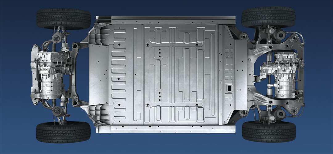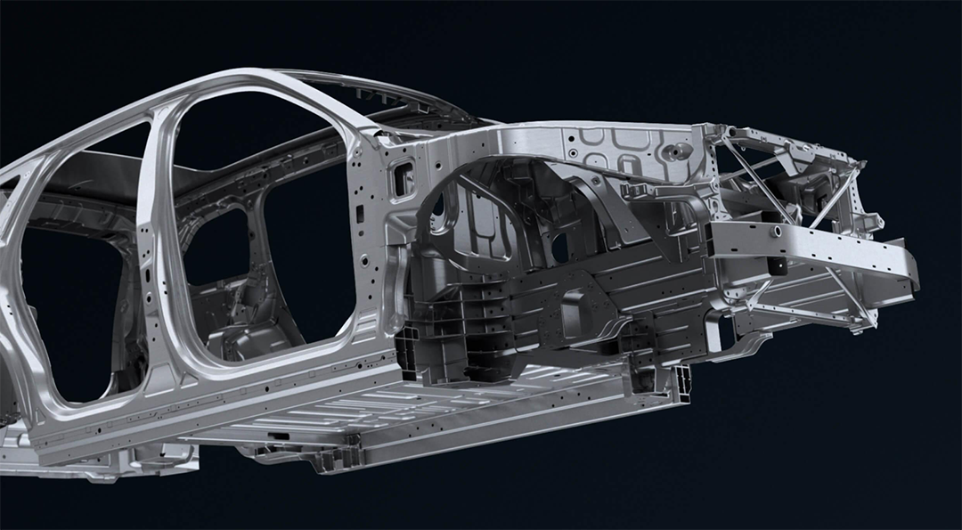 并且在纵梁中加入了结构铸件,除了增加强度,也能在车头受到撞击之后,副车架产生断裂来做到溃缩的缓冲,进一步降低冲击力跟保护车内乘员安全。