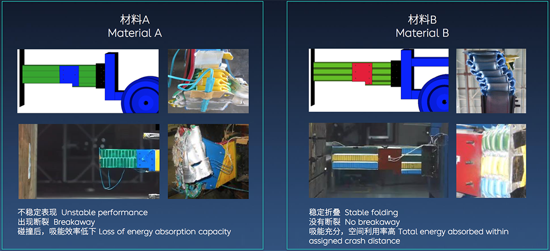 而纵梁受到撞击后,更加稳定的压缩折叠、不断裂、充分吸能等特性的材料运用不能将就。