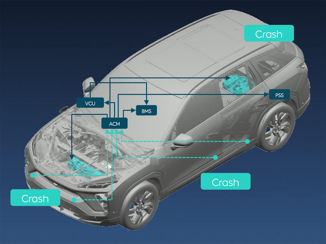并且高压系统能够实现0.015s内断电,2.5s内放电完毕,让车内乘员的安全得到保证,也让营救人员的高压风险得到解决。