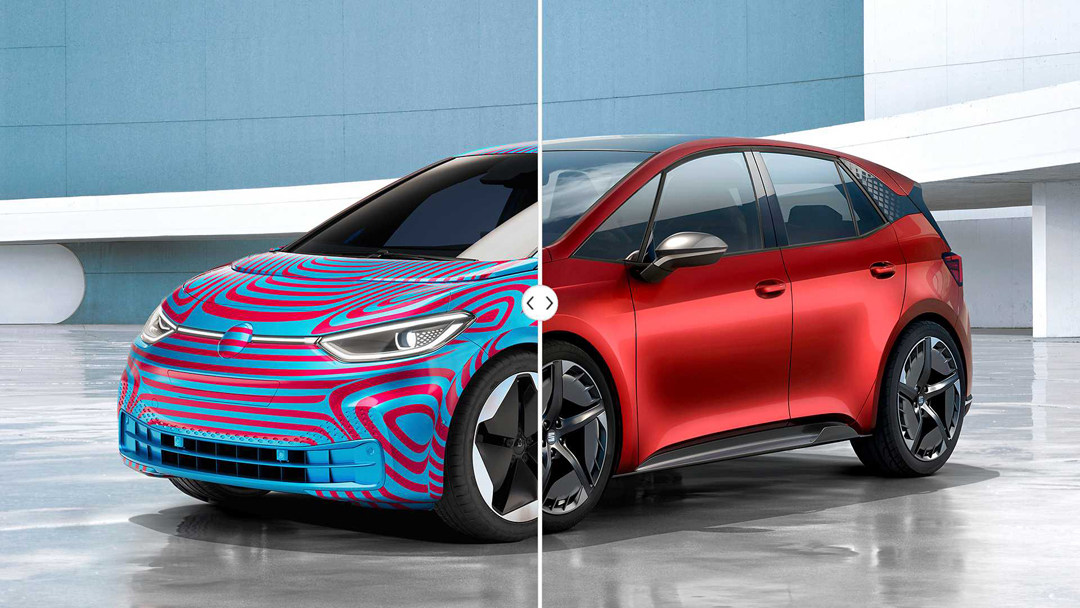 大众ID.3目前只公布了外观的伪装图以及部分内饰的视频,但从伪装图上我们也能看出些许端倪。大众ID.3纯电动两厢车,由于尺寸暂时未知,但可以推断为紧凑型级别。由于是纯电动车型,所以ID.3没有前中网的设计,仅保留下方尺寸相对较小的散热孔作为三电系统热交换使用。大灯的设计跟目前大众旗下车型不尽相同,单透镜以及周围的日间行车灯围绕而成,此外左右两个大灯之间还有灯带连接,让车头看起来更加具有整体感。