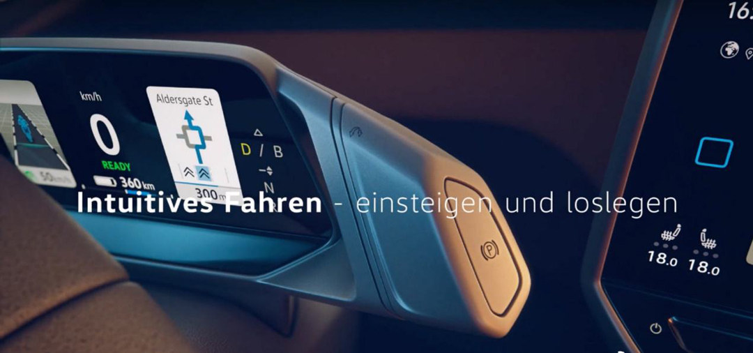 内饰方面,大众ID.3从预告片中展示了中控屏、仪表盘等细节,相比起大众传统的车辆有较大的改变,ID.3主驾驶前方的显示屏比较简约,尺寸也不算特别大,总体分三个板块显示车辆的行车信息。此外,ID.3还将换挡杆跟仪表盘融合一起,通过旋转和按钮可以实现换挡功能。
