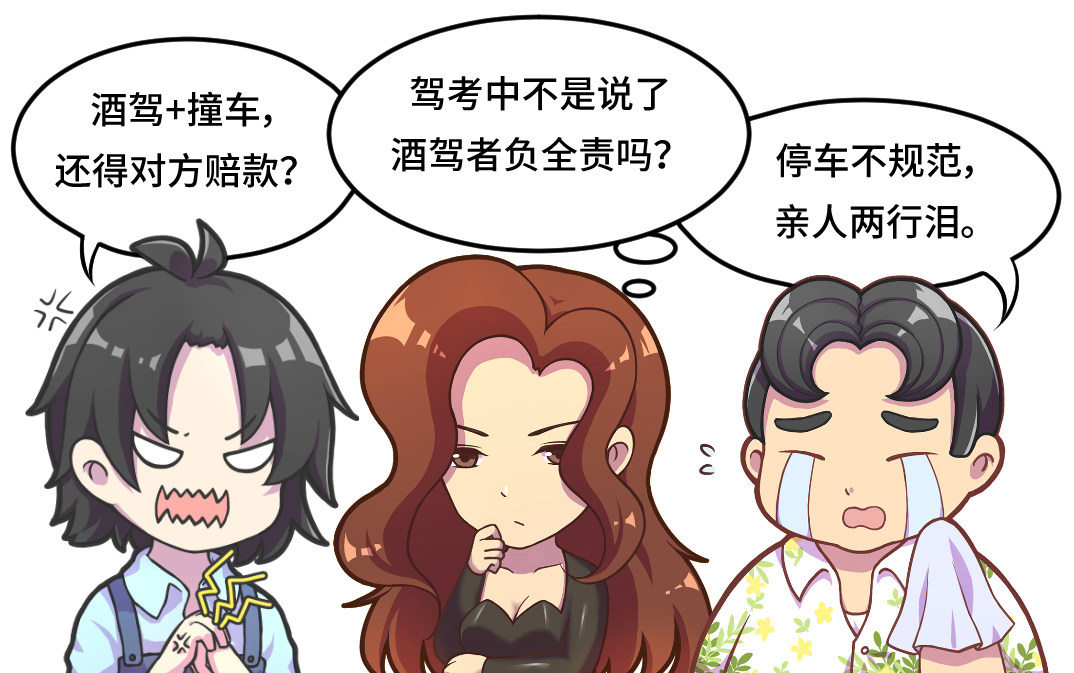 在此,教授再提醒各位一次,我们平时停车必须得注意规范,把车辆完整停入规划的停车位内,否则像上面那样飞来横祸我们也是很无奈的;其次,无论对方酒驾与否,与我们发生交通事故,我们都有承担责任的风险,无论何时我们驾车都要小心谨慎;最后,当然是,喝酒不开车,开车不喝酒啦!