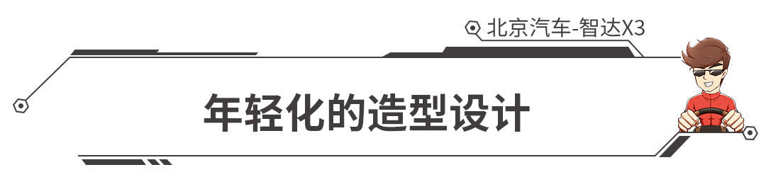 智达X3采用北京汽车“大都之美”家族式设计语言,并且换装了“BEIJING”字母车标,更显年轻。前脸大尺寸进气格栅配以镀铬装饰,两侧犀利造型的灯组,让新车充满辨识度。