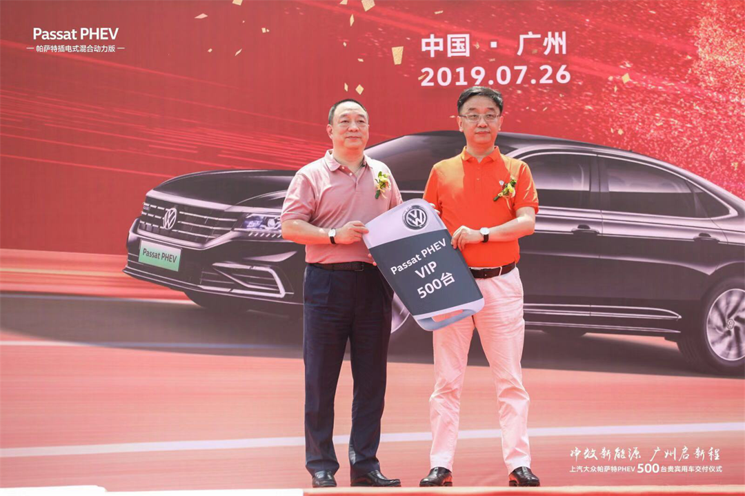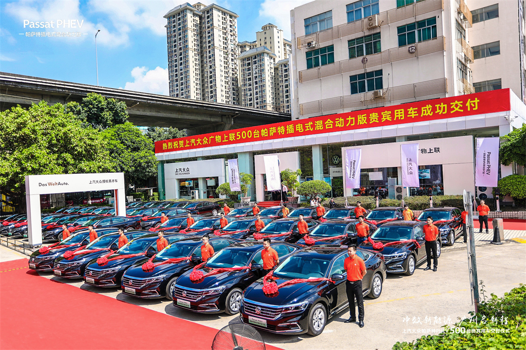 7月26日,“上汽大众帕萨特PHEV500台贵宾用车交付仪式”在广物汽贸隆重举行。上海上汽大众汽车销售有限公司党委书记、上汽大众大众品牌营销事业部执行总监杨嗣耀,上汽大众大众品牌华南销售服务中心总经理黎志荣,广物汽贸股份有限公司副总经理程钢,广物汽贸上汽大众事业部部长李军,广东广物上联汽车销售服务有限公司总经理姚俊德,上海京腾汽车租赁有限公司、大咖出行科技有限公司总裁严向阳,上海京腾汽车租赁有限公司金保部总监王玉莹,浦发银行上海分行汽车金融部总监董海晨先生,以及广州本地主流媒体代表出席此次仪式,共同见证此次500台帕萨特PHEV贵宾用车交付盛况!