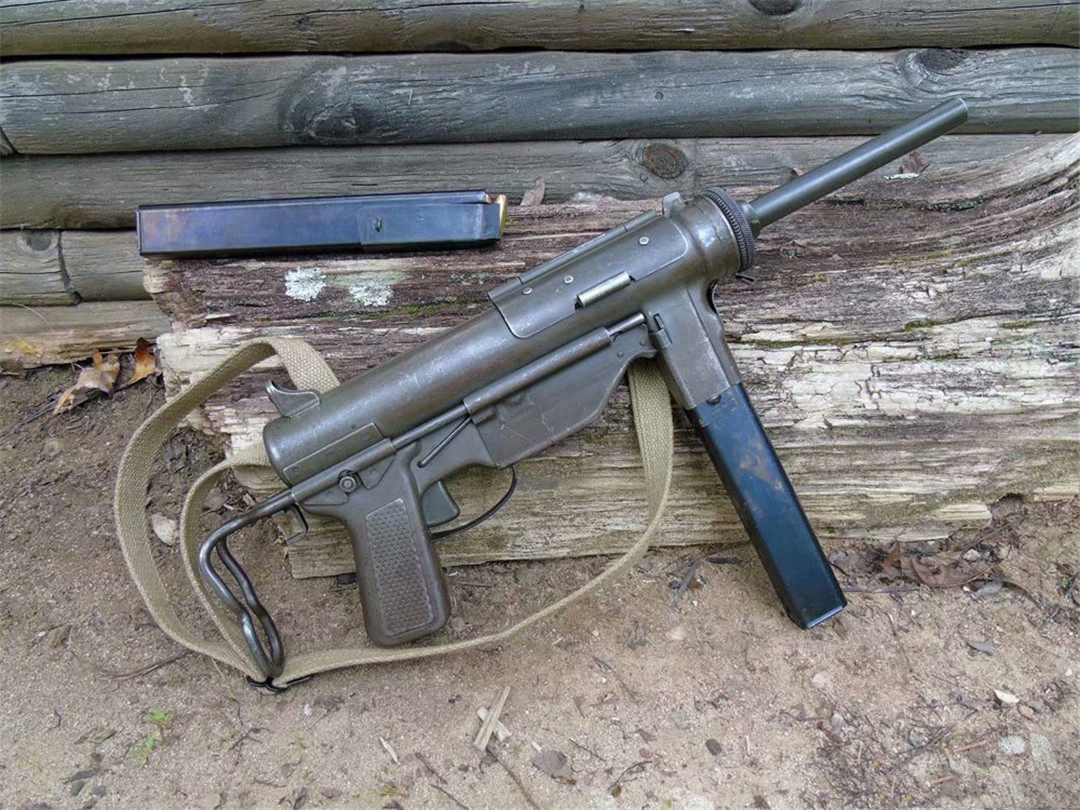 M3冲锋枪:是美军参照英国司登冲锋枪的理念研发出的廉价冲锋枪,意在取代高成本且生产耗时汤姆逊系列。M3冲锋枪由于长相丑陋,酷似替汽车打润滑油的油枪,在服役初期受到美军士兵的耻笑,但随着实战的检验,大家都发现M3故障率很低,维护简单,仅有400发每分钟的射速很容易控枪,.45口径手枪弹近距离的威力也比德军的9mm子弹大得多,因此很快得到了士兵们的信赖。这款冲锋枪在二战后被援助给多个国家,至今仍在某些国家军中服役。