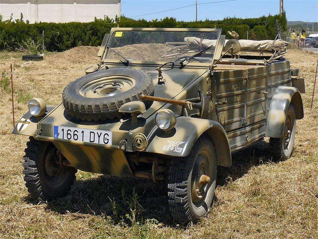 VW82桶车:其原型车就是大家熟知的初代甲壳虫,因此桶车同样采用了风冷引擎和后置后驱布局。桶车在德军中的地位与美军的威利斯吉普类似,也是作为战场通勤车和指挥官座车,拥有敞篷版、水陆两栖版等多种型号,只不过相比威利斯吉普,桶车绝大多数都是后驱版本,通过性有所不足,后置引擎也让其装载能力逊于威利斯吉普。