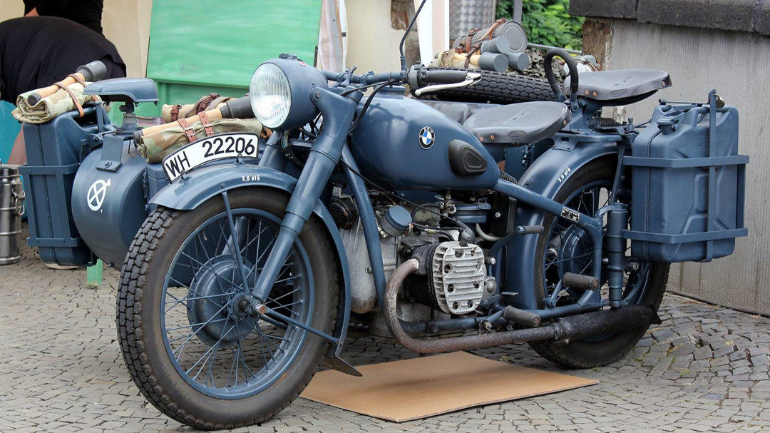 R75摩托:二战德军大规模使用的其中一款跨斗摩托车,装备一台0.8L的26马力双缸水平对置风冷汽油机,战时被大量生产,用作大众82型桶车的补充,执行战场通勤侦查等任务,二战期间和战后被其它国家仿制,最熟悉的便是我国根据苏联仿制R75而来的产品,再二次仿制出的长江750摩托。