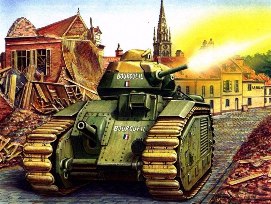 B1重型坦克:是法国陆军在二战前开发,用于支援步兵作战的重型攻坚突破用坦克,纵使法国陆军的战术理念已被德国超越,导致B1设计理念落后,但其防护和火力依旧强于当时德国任何一种坦克,创造过1辆B1单挑十多辆德国坦克,自身毫发无损而全歼敌军的战例。德军最后不得不搬出88mm防空炮才能将其击毁,并间接催生了德国虎式等重型坦克的研发。
